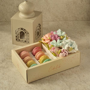 The box includes: Salted Caramel Chocolate Bar Chocolate Bar with Pistachio Paste Assorted Dragees Strawberry Dragees (Cylinder) Macaron Set Marshmallow Toffee Candies Gianduja Cake Pistachio Chocolate Cookies Caffe Diemme Cambodia Whole Bean Coffee Naturera Vanilla Syrup Thermos