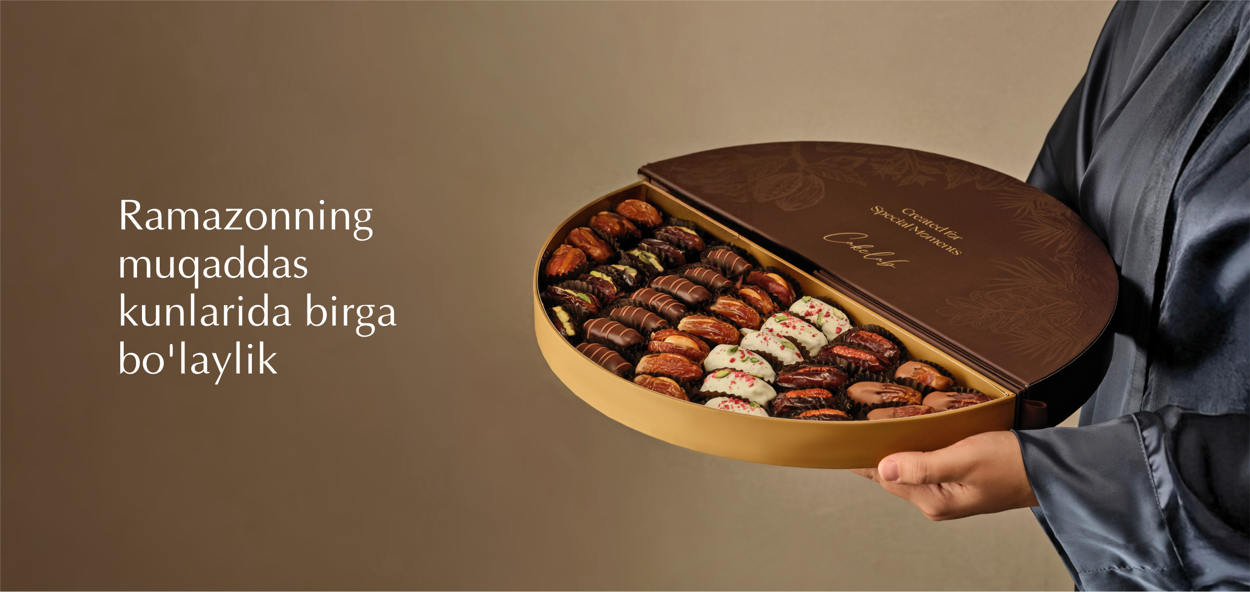 Ushbu to'plam Belgiya shokoladi bilan qoplangan, yong'oq bilan to'ldirilgan tanlangan xurmolarni o'z ichiga oladi.